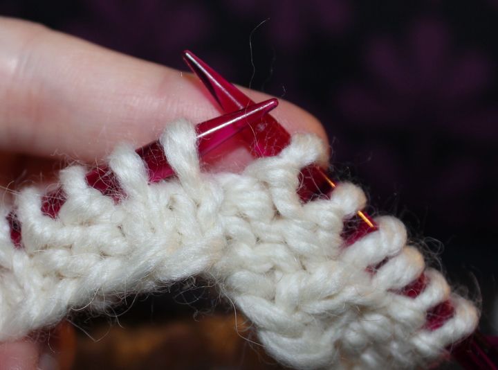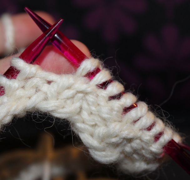 ... and put it on the left needle. Now the stitches are in the right order, you only have to knit them... |