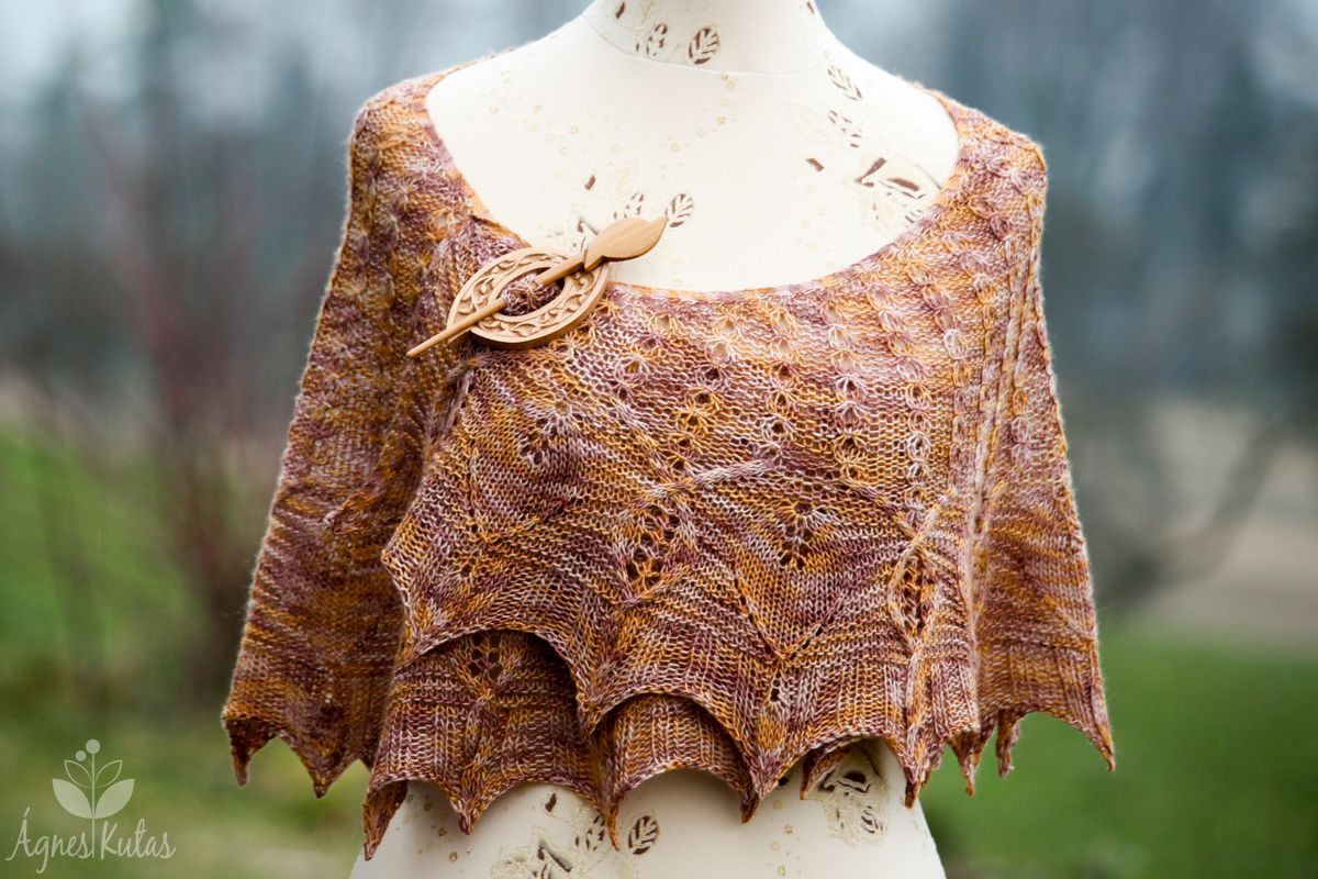Az Aghamora kendő a természet ébredését ünnepli botanikus motívumaival. A kendőtest finom, csavart hatású mintáját segédtű nélkül, egy egészen más technikával érjük el, tulajdonképpen egyáltalán nem csavarások ezek, könnyen köthető és memorizálható, pihentető mintáról van szó. A szegély kezdetén mozgalmasabbá válnak az események, igazi csavarások lépnek a képbe, levelek nőnek egyre nagyobbra, végül levezetésképpen egy könnyed patentmintával zárunk.